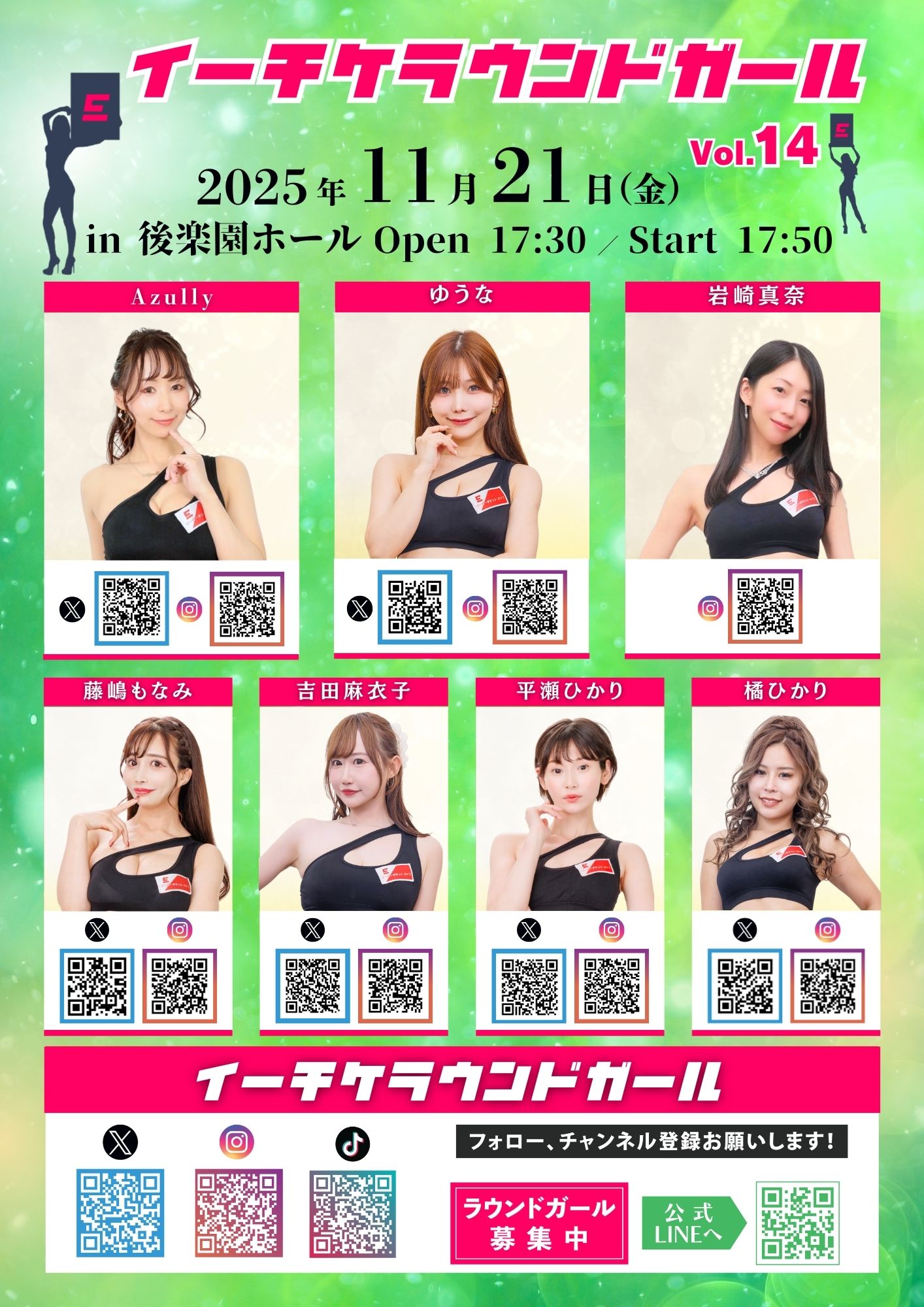 イーチケラウンドガールVol.14にて、1位の岩崎真奈とイーチケラウンドガールに注目集まる!~イーチケラウ... ~イーチケラウンドガール以外にもグラビアやライブ配信など多方面で大活躍の7名に新設されたイーチケリポーター2名が華を添えた~ 有限会社遊企画21(本社:東京都清瀬市、...