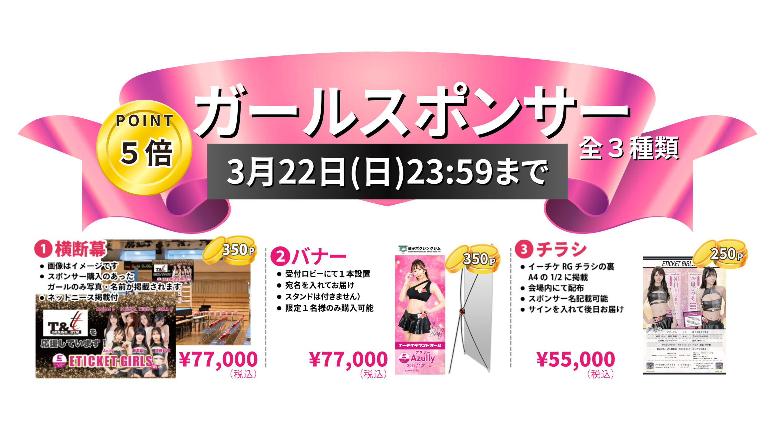 購入されたガールはイーチケ横断幕に写真・名前掲載されます。